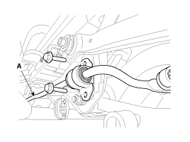 arrière (A) du bras inférieur arrière et de la barre stabilisatrice.